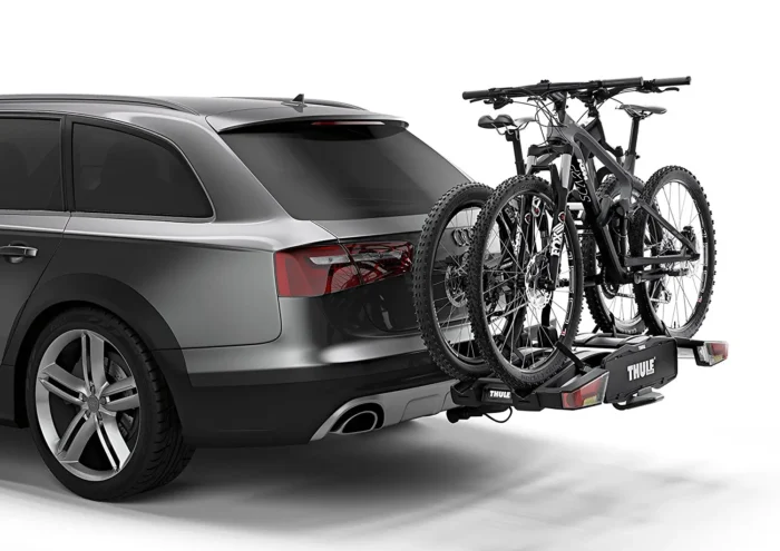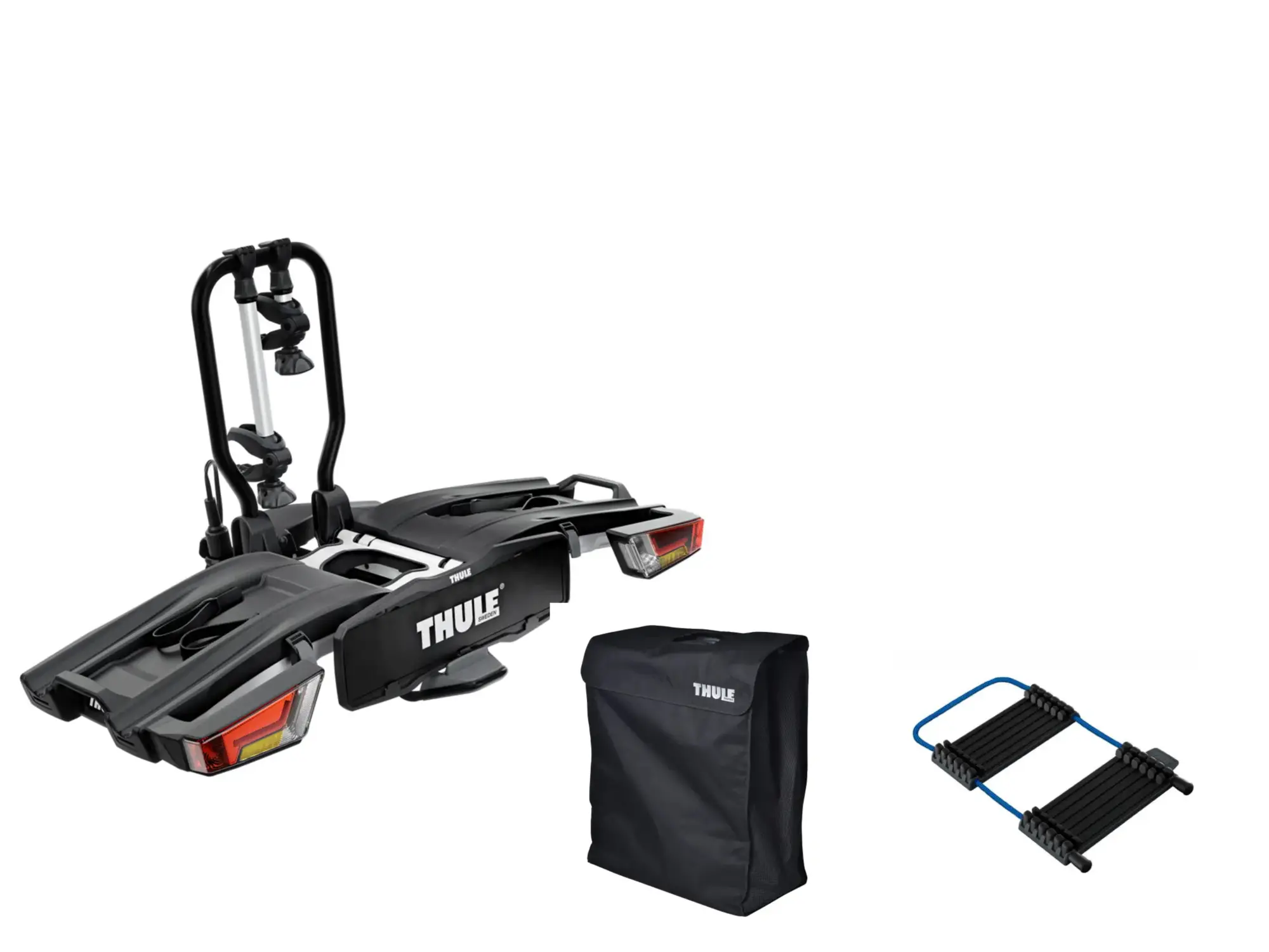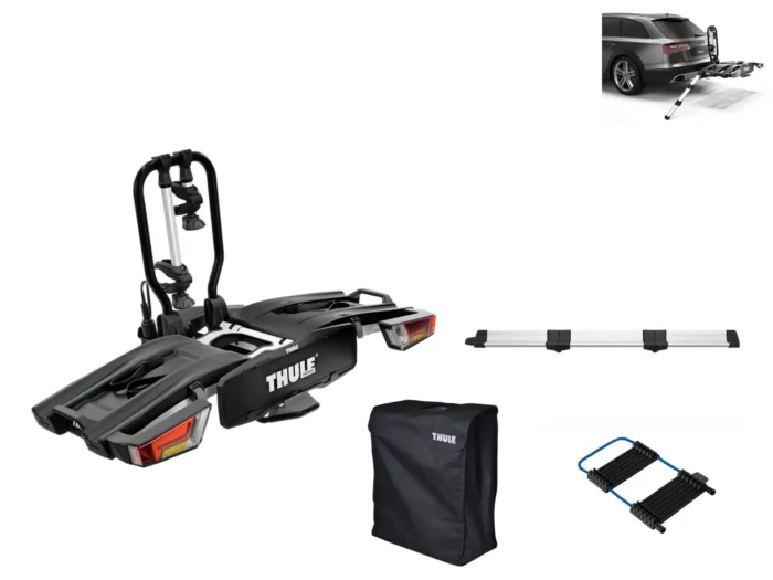 Porte vélo livré avec : rampe de chargement, Sac de rangement Thule, pour les cadres en carbone.