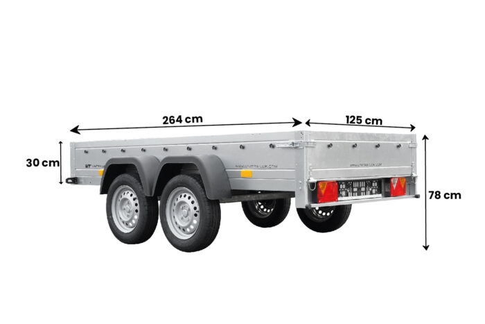 Nous vous proposons l’une des plus grandes remorques automobiles avec une surface de transport de 264×125 cm, qui vous permettra de transporter des charges de très grand volume. La remorque 264/2 KIPP facilite toutes les tâches de transport. La remorque est également équipée d’un mécanisme de basculement qui permet de charger et de décharger pratiquement n’importe quelle charge.
