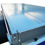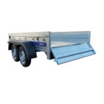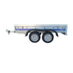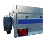 Sur cette remorque, seule la ridelle arrière est à la fois amovible et rabattable.