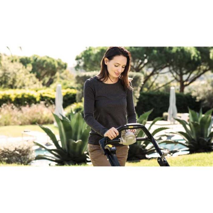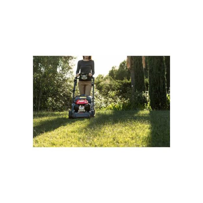 Vous apprécierez sa grande maniabilité avec ses grandes roues à roulement à billes ainsi que son réglage de la hauteur de coupe centralisé rapide et sans effort à 7 positions de 25 à 79 mm.