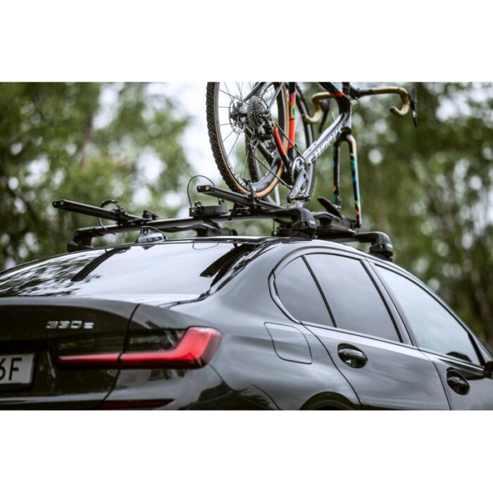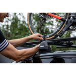 – Tout est verrouillable: le vélo sur le porte-vélo et le porte-vélo sur les barres de toit.