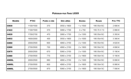 Remorque plateau lider 32650 – ptac 2500 kg (406 x 215)